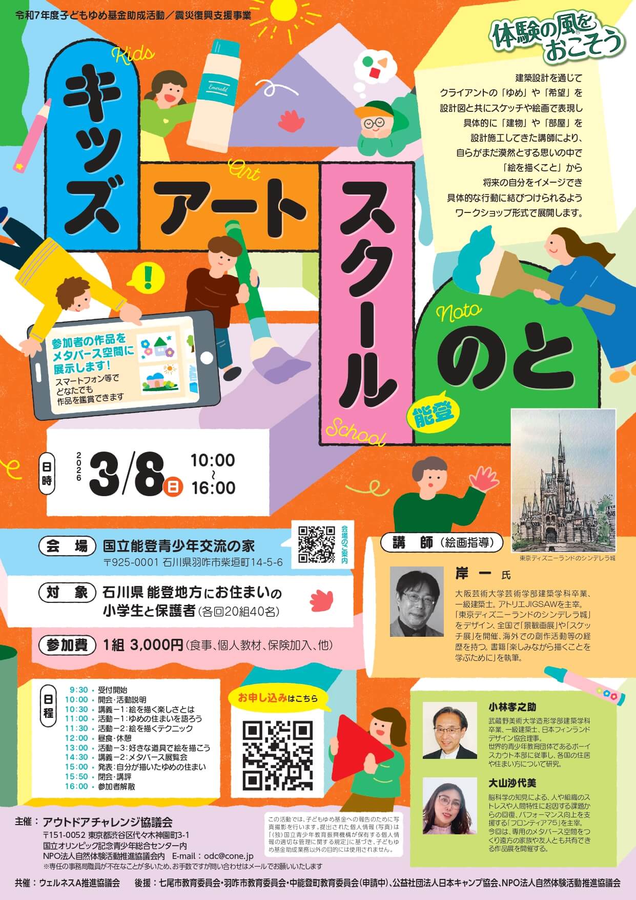 対 象:石川県 能登地方にお住いの小学生と保護者(各回20組40名)